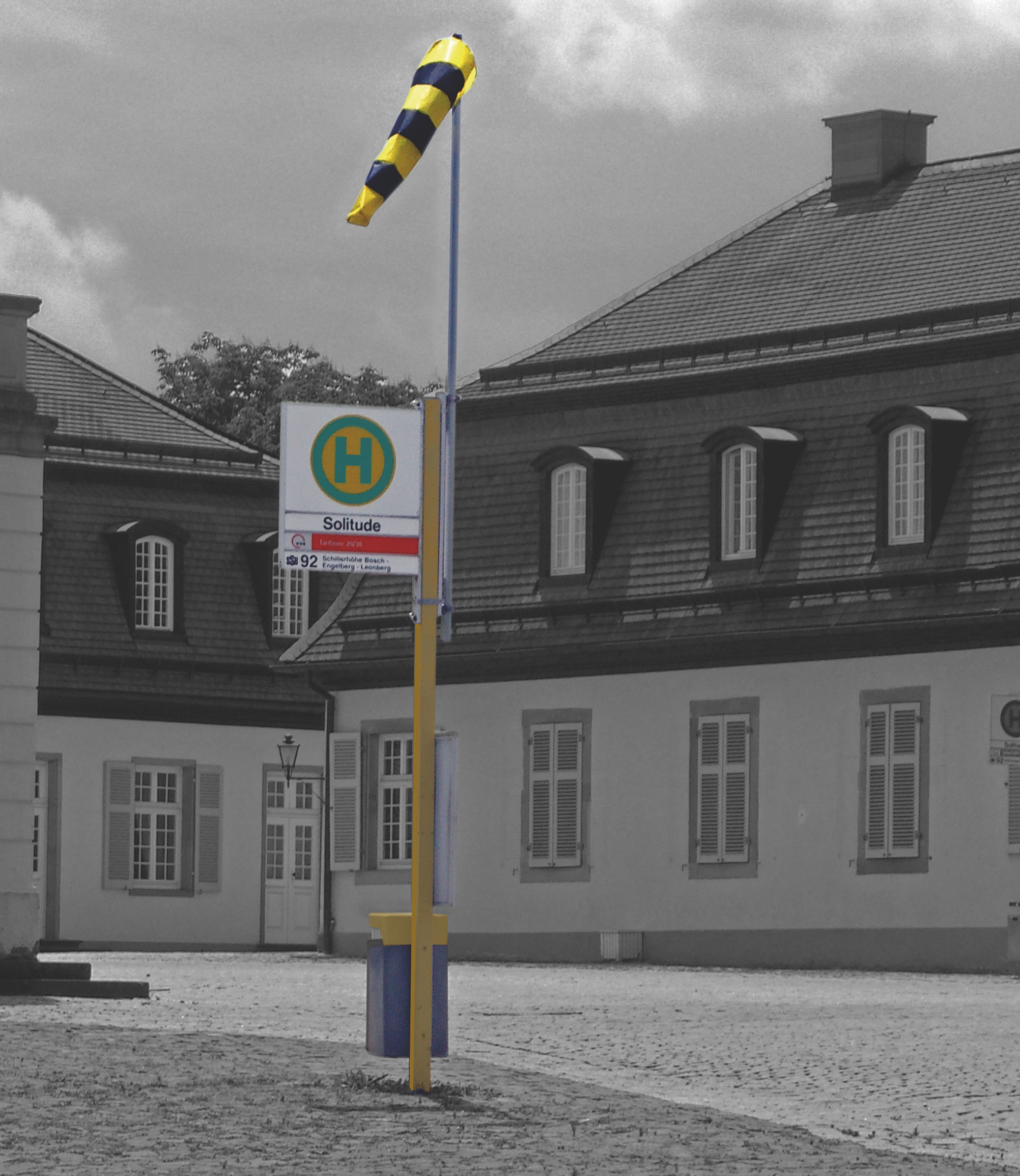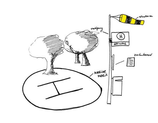 Der ca. 23 m große, mit Kreide markierte Landekreis befand sich direkt neben der Bushaltestelle Solitude, die mit einem gelb-schwarzen Windsack und einem Kuritke-Empfänger erweitert worden war.