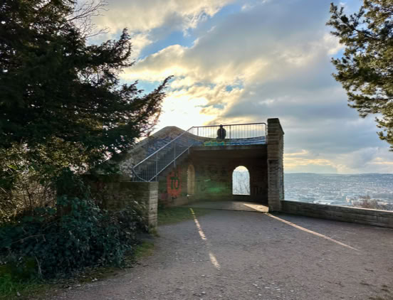 steigt am Charlottenplatz in die U15 Richtung Ruhbank um und fährt bis Haltestelle Heidehofstraße. Von dort gibt es einen kurzen Fußweg bis zum Aussichtspunkt Uhlandshöhe.