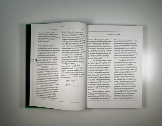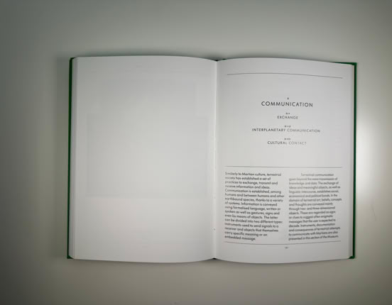 Die Ausstellung inszenierte sich als anthropologische Feldstudie von Marsbewohnern, die auf der Erde gelandet sind und versuchen, »terrestrische Kunst« zu verstehen. Kunstwerke wurden nicht kunsthistorisch erklärt, sondern wie rätselhafte Artefakte einer fremden Spezies untersucht.